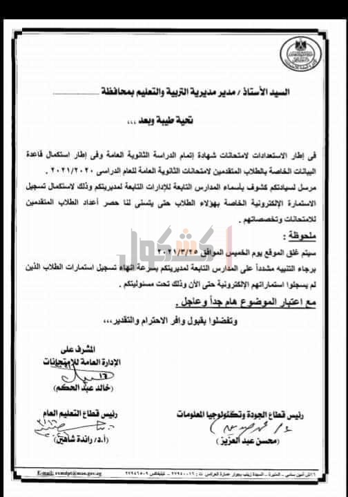 بهؤلاء الطلاب حتى يتسني للوزارة حصر أعداد الطلاب المتقدمين للامتحانات