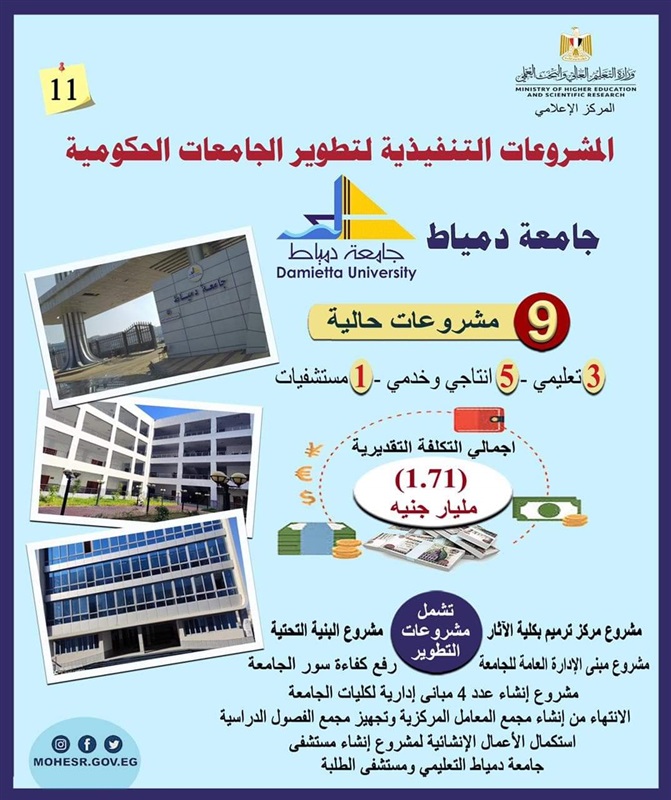 جراف انفوجراف.. المشروعات التنفيذية لتطوير الجامعات الحكومية "جامعة دمياط" إسراء جمال الأربعاء 17/مارس/2021 - 12:58 م 3/17/2021 12:58:00 PM طباعة ننشر المشروعات التنفيذية لتطوير الجامعات الحكومية بجامعة دمياط. facebook twitter whats شارك