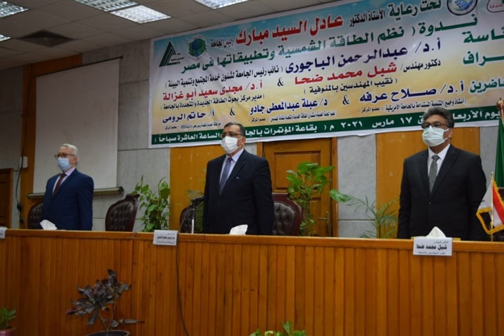 نظم صباح اليوم، مركز بحوث الطاقة الجديدة والمتجددة بجامعة المنوفية بالتعاون مع نقابة المهندسين بالمنوفية ندوة علمية حول "نظم الطاقة الشمسية وتطبيقاتها في مصر"، وذلك تحت رعاية الدكتور عادل مبارك رئيس الجامعة، ورئاسة الدكتور عبدالرحمن الباجوري نائب رئيس الجامعة لشئون خدمة المجتمع وتنمية البيئة، والدكتور شبل ضحا نقيب المهندسين بالمنوفية.