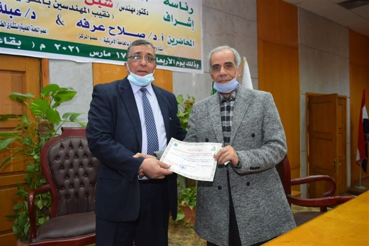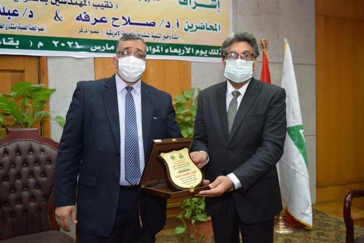 عبدالرحمن الباجوري، درع الجامعة إلى الدكتور شبل الذي قدم درع نقابة المهندسين أيضا