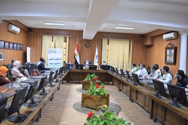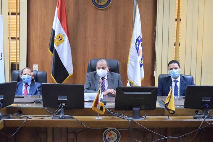 رئيس جامعة بني سويف، اليوم، 25 طالب وطالبة من المتفوقين دراسيًا من كليات "الطب،
