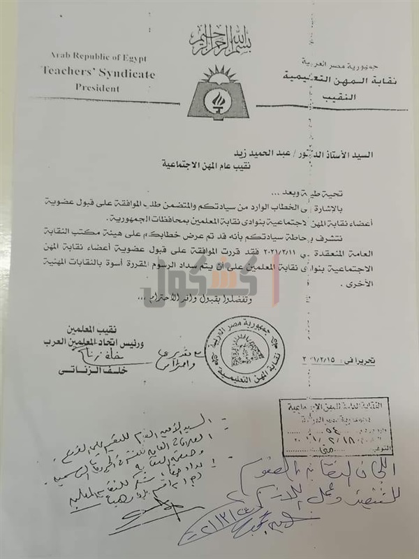قبول عضوية الاجتماعيين بنوادى المعلمين "مستند"