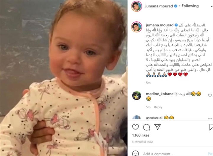 وفاة ابنة جومانا مراد: " أنتي طير من طيور الجنة يا أمي"