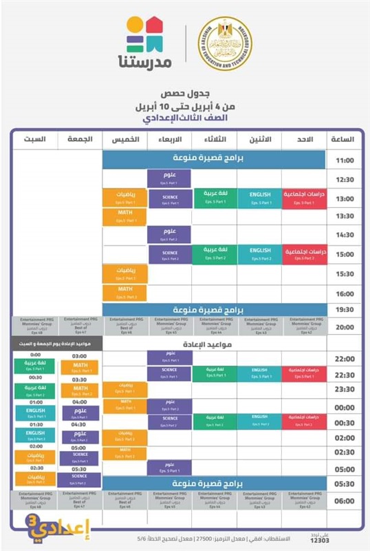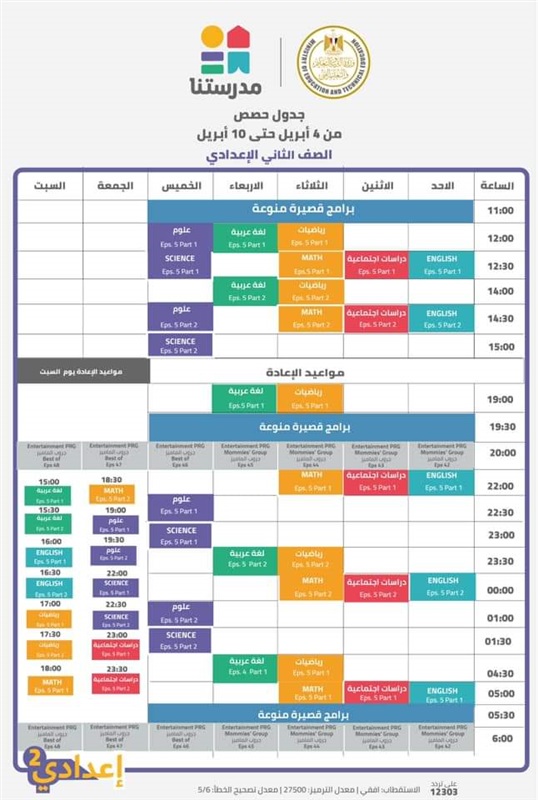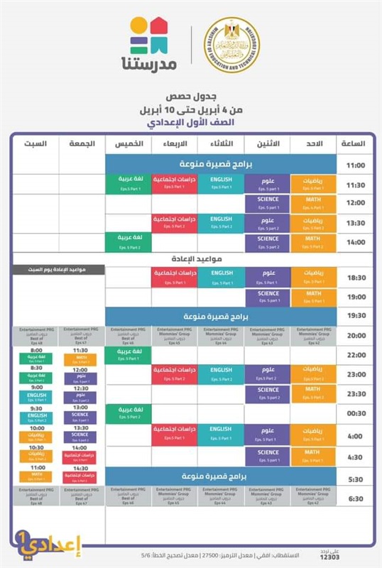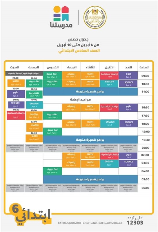 ننشر مواعيد الدروس التعليمية على قناة مدرستنا