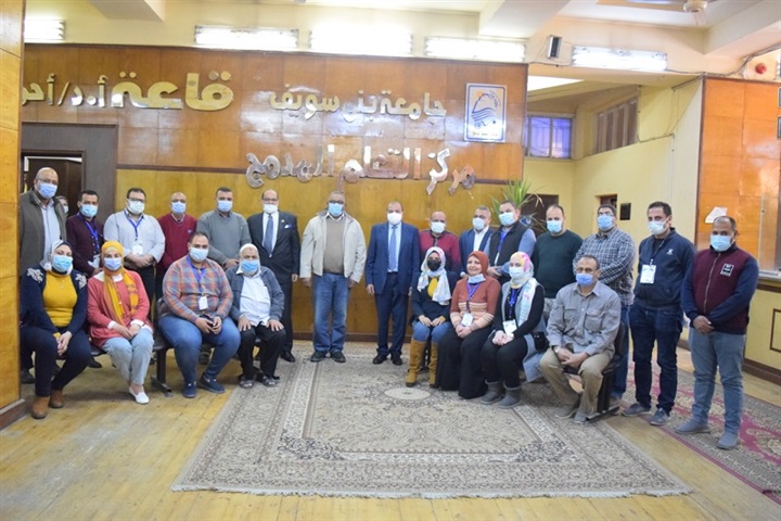 رئيس جامعة بني سويف يلتقي العاملين بمركز التعلم المدمج