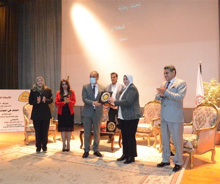 نظم قطاع شئون خدمة المجتمع وتنمية البيئة بجامعة الزقازيق، صباح اليوم، بإشراف الدكتورة غادة شاكر، نائب رئيس الجامعة لشئون خدمة المجتمع وتنمية البيئة، والدكتورة جيهان يسري مقرر المنتدى ووكيل كلية التربية الرياضية للبنات لشئون خدمة المجتمع وتنمية البيئة، المنتدى الثقافي ندوة بعنوان "العنف في المجتمع المصري.. تحديات ومواجهة"، وذلك في إطار حرص الدولة علي مناهضه العنف، وتنفيذًا لتوجيهات القيادة السياسية، ومن منطلق اهتمام جامعة الزقازيق، برفض العنف بكل صوره وأشكاله، داخل المجتمع المصري، وتحت رعاية الدكتور عثمان شعلان، رئيس الجامعة.