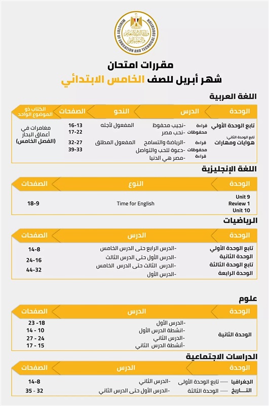 استعدادًا للامتحانات.. "التعليم" تعلن مقررات شهر ابريل