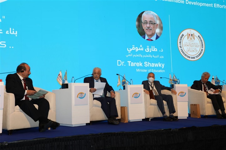 واختتم الدكتور طارق شوقي وزير التربية والتعليم والتعليم الفني، كلمته في المؤتمر، مؤكدًا أن الإنسان هو الركيزة الأساسية لصناعة الحضارات والنهوض بأي دولة؛ لذا كان توجه الوزارة نحو إحداث تطوير شامل للمنهج وآليات وأدوات التقويم؛ ليتماشى مع متطلبات التنمية على المستوى المحلي والإقليمي والدولي، والاعتماد على التكنولوجيا؛ لتكون بوابة النفاذ إلى التنافسية الدولية، من خلال التوظيف الكفء لها في عمليات التعليم والتعلم، والتعلم مدى الحياة، والتواصل على مستوى دولي، والاطلاع على أهم تجارب العالم، سواء على المستوى الفردي، أو مستوى النظم، والارتقاء بالقوى البشرية في التعليم والإدارة والتوظيف الأمثل للموارد، والعمل على الإصلاح من الداخل، وغير ذلك من الآليات، من خلال مشاركة حقيقية وفعالة من جميع المعنيين والمهتمين بالشأن التعليمي؛ من أجل تحقيق أهداف استراتيجية التنمية المستدامة "رؤية مصر 2030".