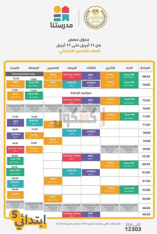 تردد قناة مدرستنا لنقل جدول حصص طلاب الابتدائية