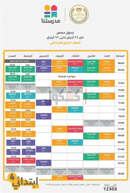 جدول حصص مدرستنا لطلاب الابتدائية الأزهرية.. من 11 حتى 16 أبريل