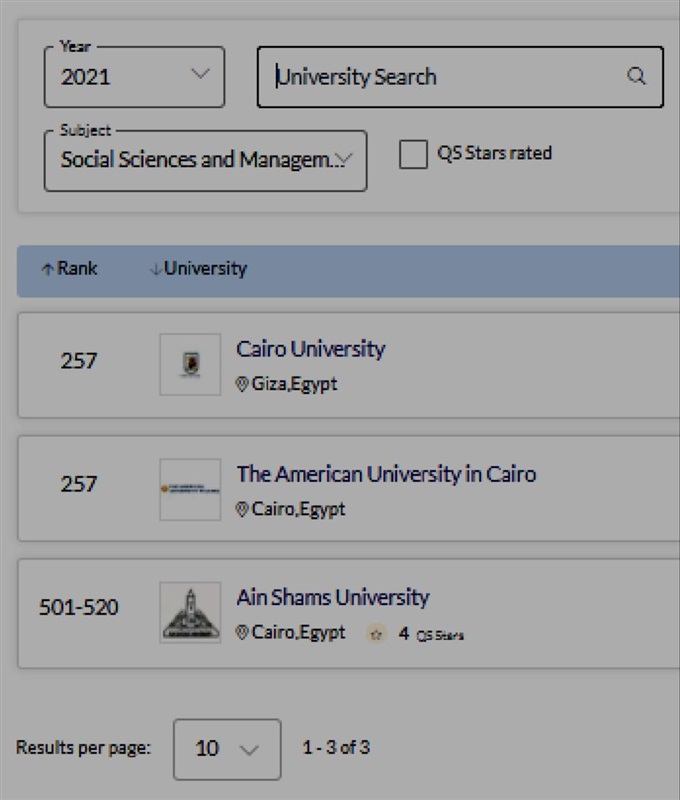 و "القانون" وحصل كلاهما على ترتيب فى الفئة من 251 – 300، بالإضافة إلي