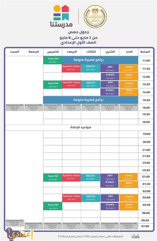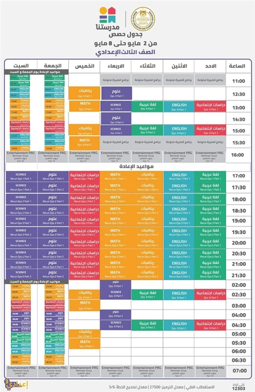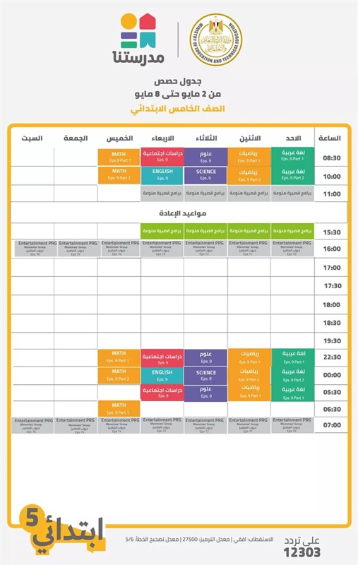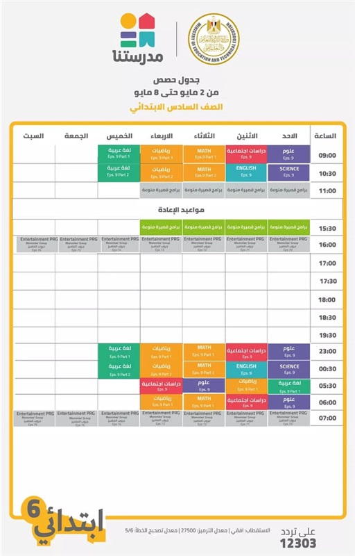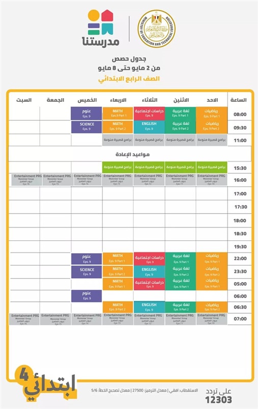 جداول الدروس على قناة مدرستنا بالأسبوع 29 للدراسة «صور»