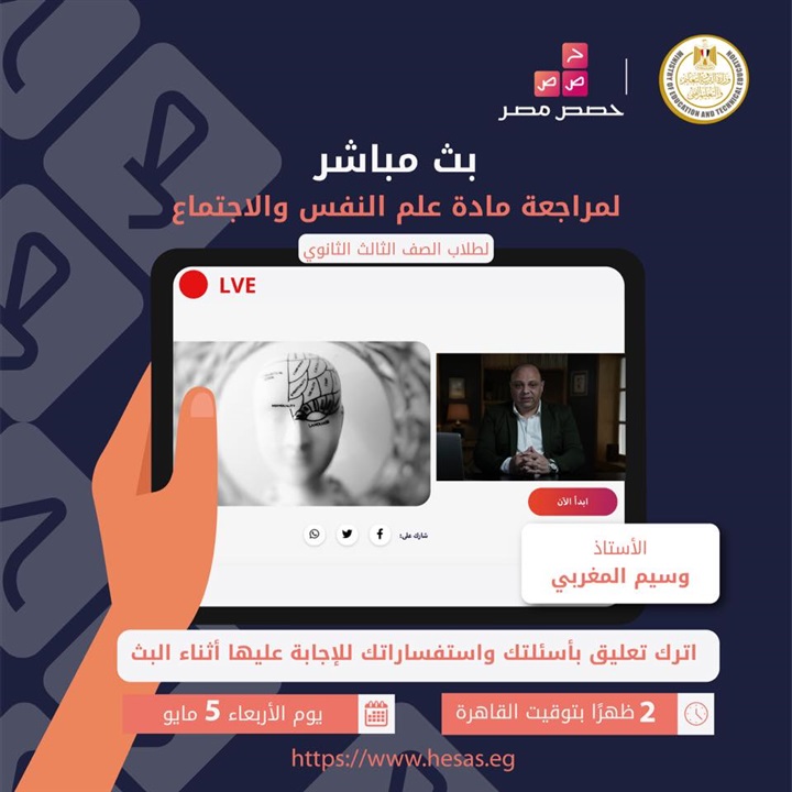والتعليم، إلى أن بث مراجعة مادة علم النفس والاجتماع لطلاب الشهادة الثانوية، غدا