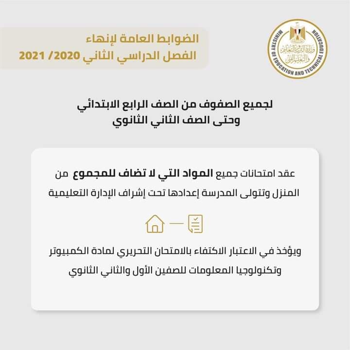 عدلت وزارة التربية والتعليم والتعليم الفني ، الانفوجراف الذي اصدرته فيما يخص ذكر الصفوف الدراسية المسموح لها عقد امتحانات جميع المواد التي لا تضاف للمجموع من المنزل.