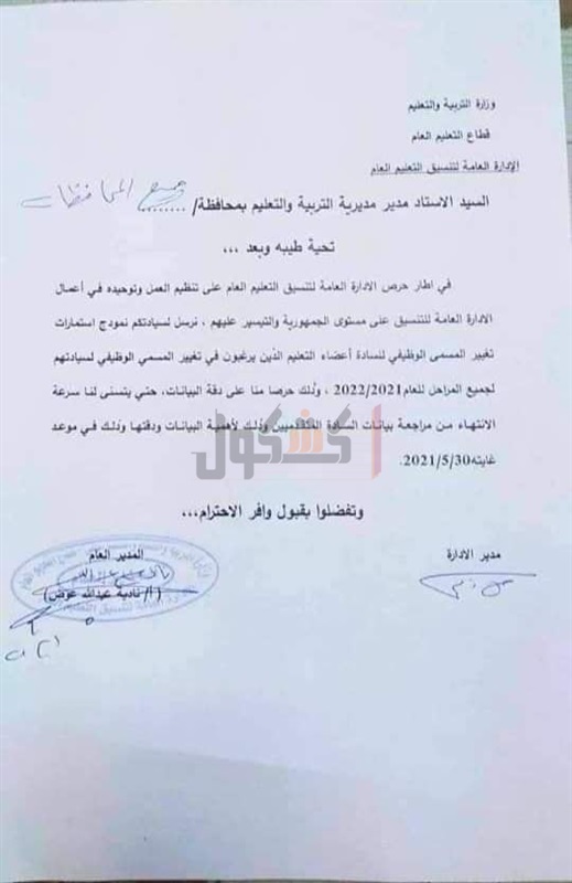 ونص الخطاب على أنه في اطار حرص الإدارة العامة لتنسيق التعليم