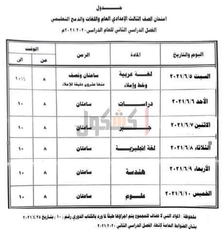 أعلن اللواء محمد الزملوط محافظ الوادى الجديد أنه بناء على نتيجة إستطلاع الرأى الذى أجرى لتحديد موعد امتحانات نهاية العام الدراسى للشهادة الإعدادية، استجابة لشكوى الطلاب وأولياء الأمور من الموعد المقرر.