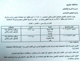 أعلن مديرية التربية و التعليم في محافظة مطروح ، جدول الامتحان التكميلى للصفين الاول والثانى الاعدادى (1-2) صفوف النقل للعام الدراسى ٢٠٢٠ / ٢٠٢١.