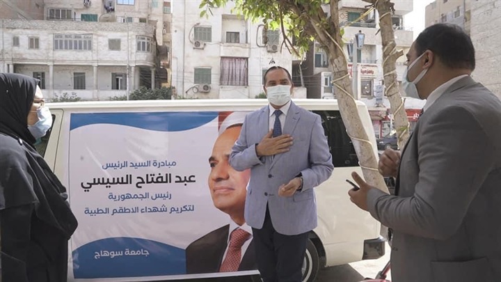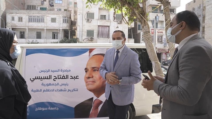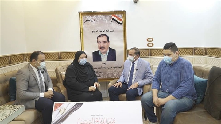 رئيس جامعة سوهاج يسلم هدية الرئيس السيسي لأسر شهداء الأطقم الطبية