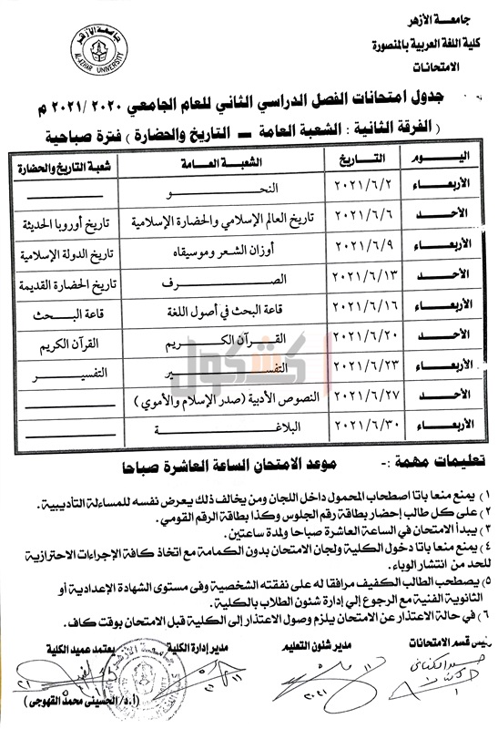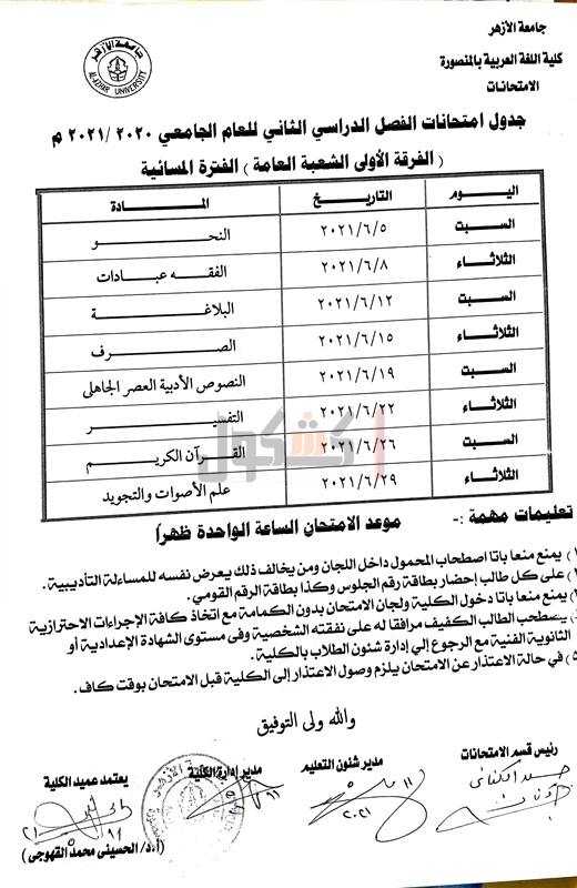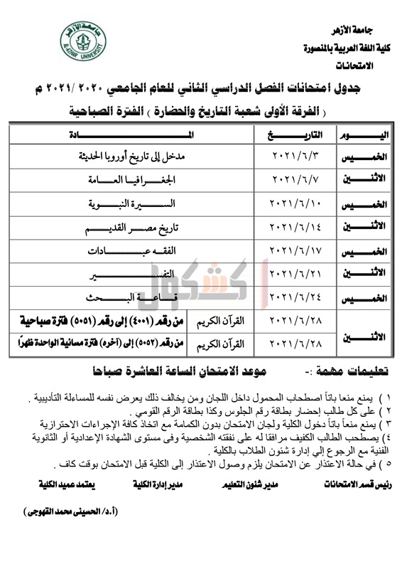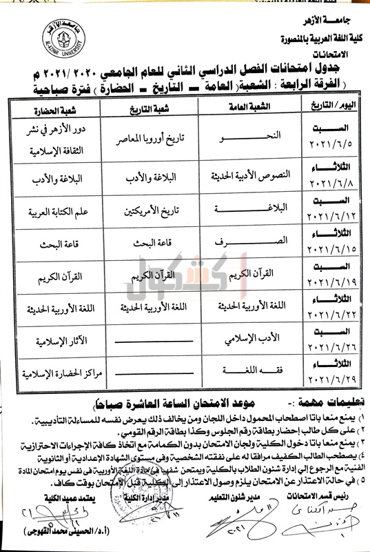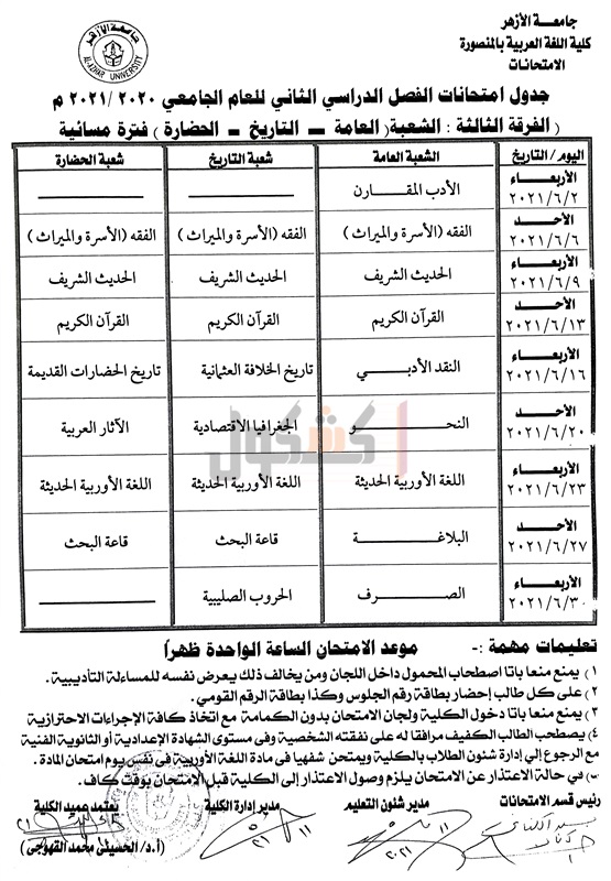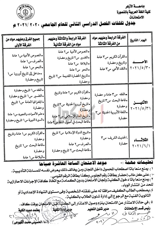 جداول امتحانات كلية اللغة العربية بالمنصورة