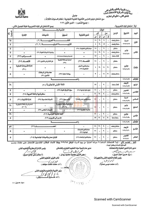ننشر جدول الدبلومات الفنية التجارية نظام الثلاث والخمس سنوات والتعليم المزدوج