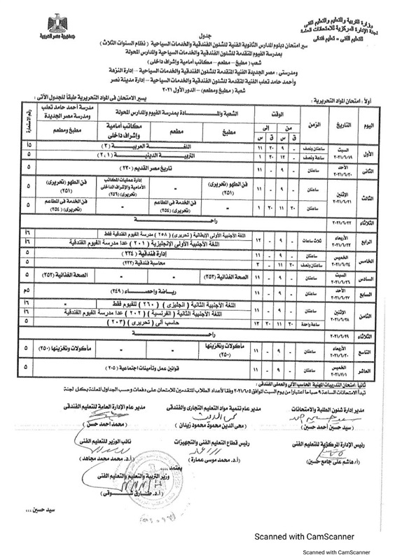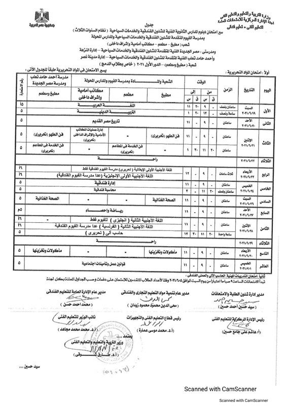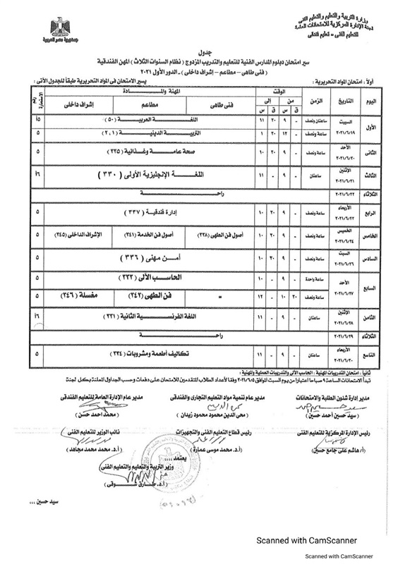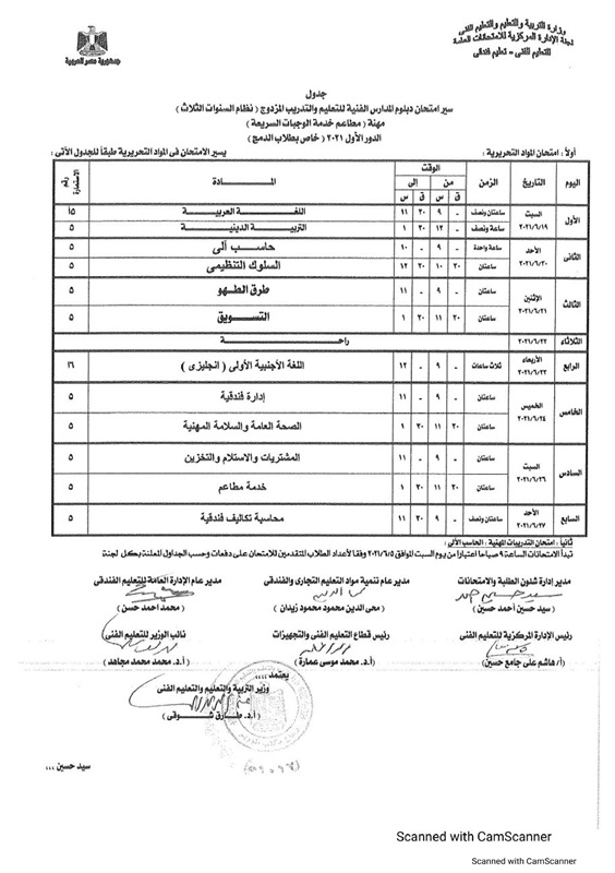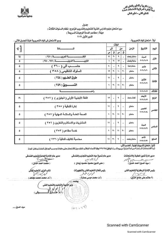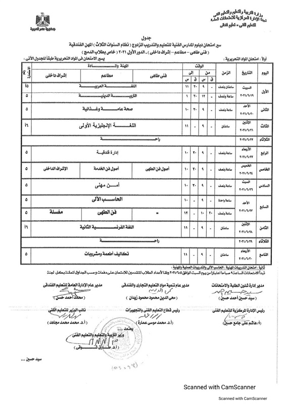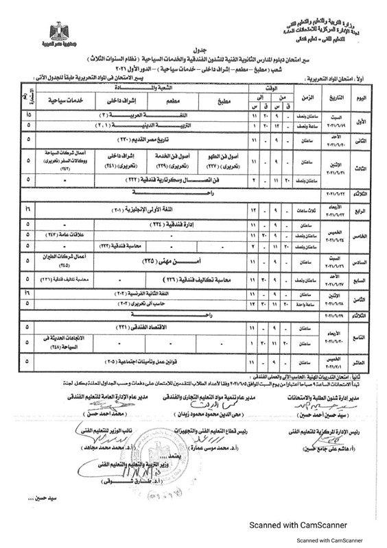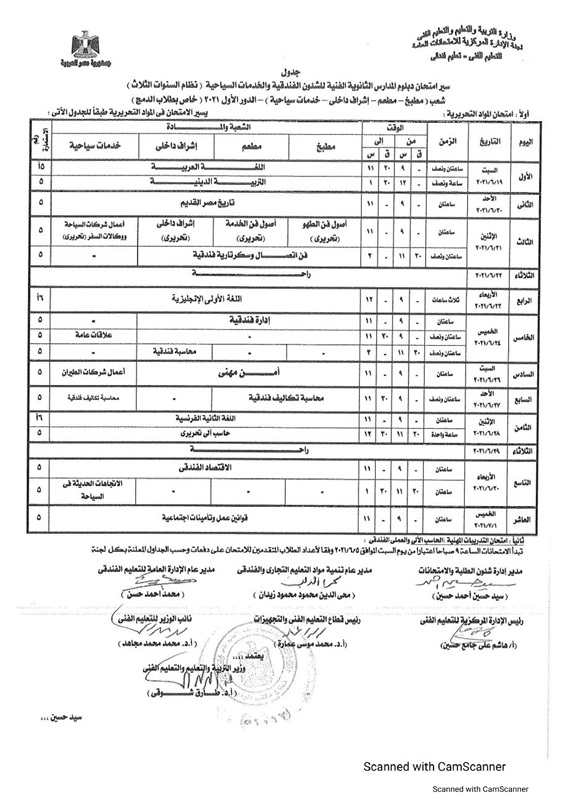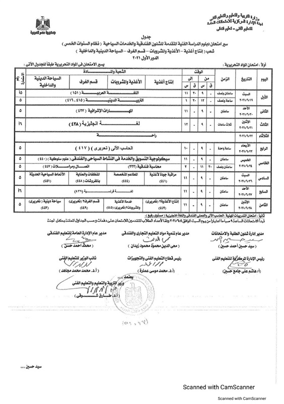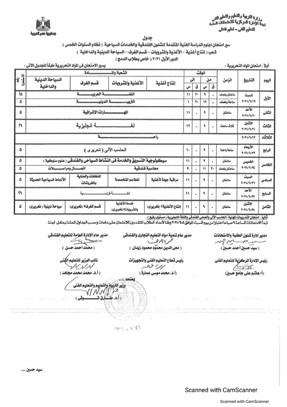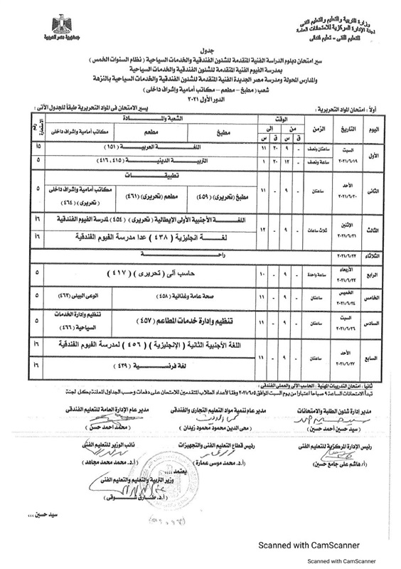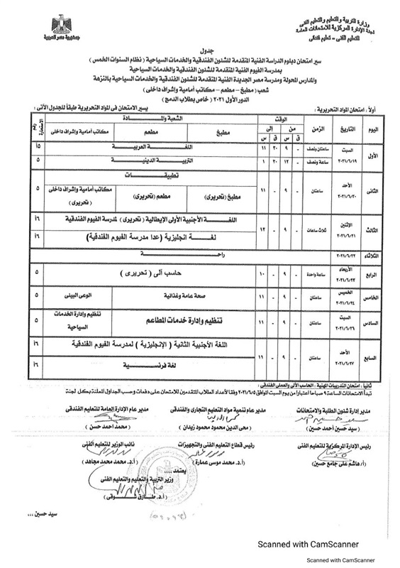 ننشر جدول الدبلومات الفنية الفندقية والخدمات السياحية نظام الثلاث والخمس سنوات والتعليم المزدوج