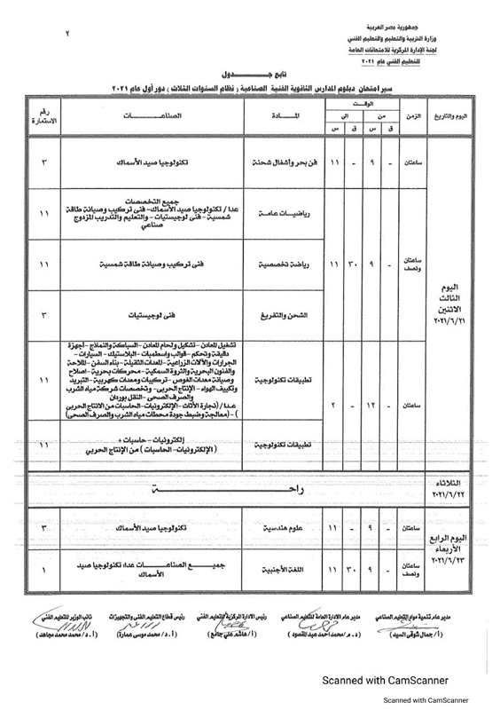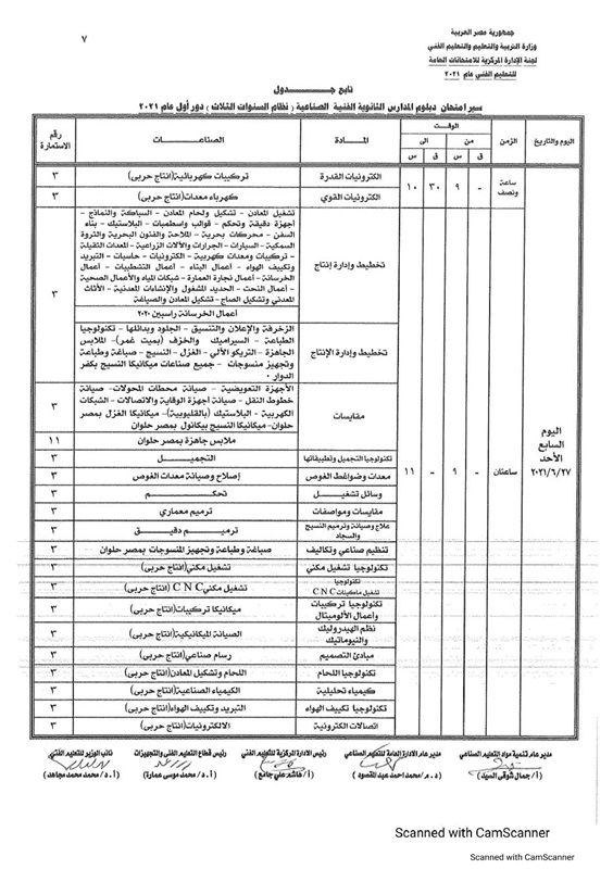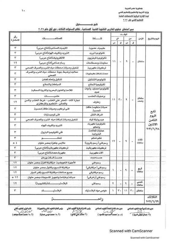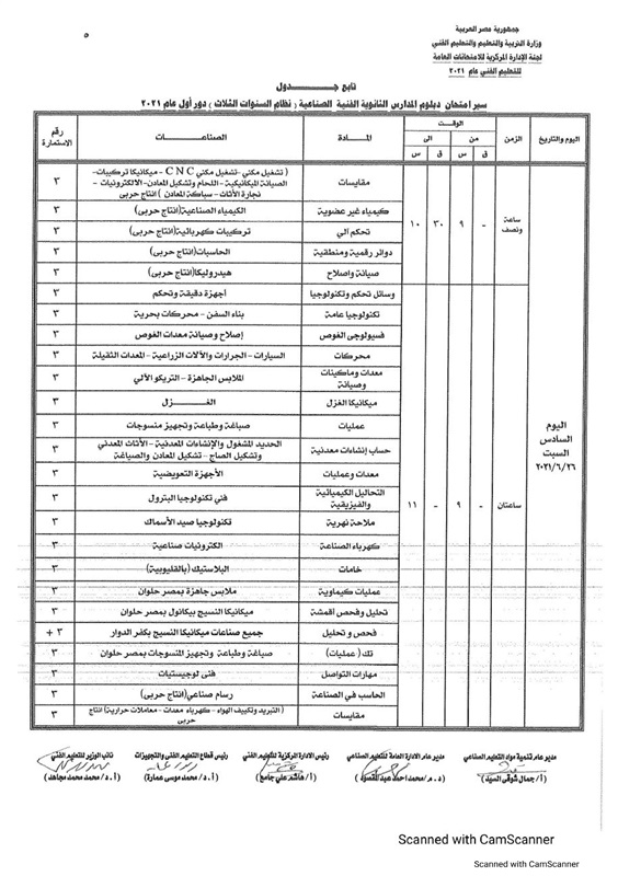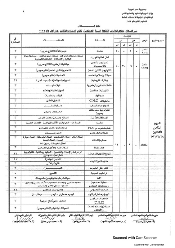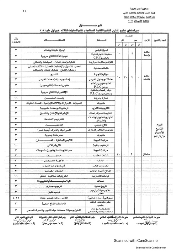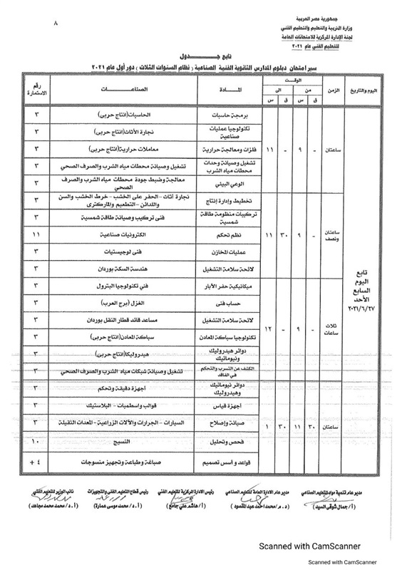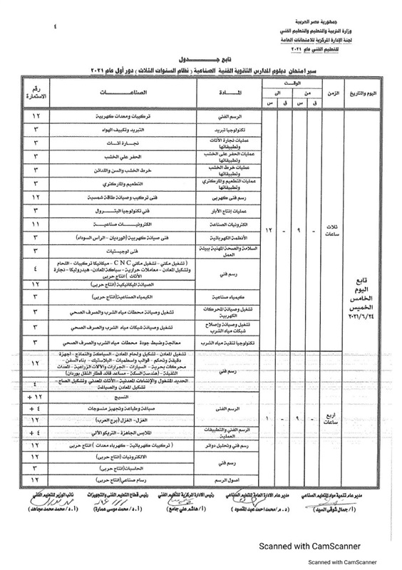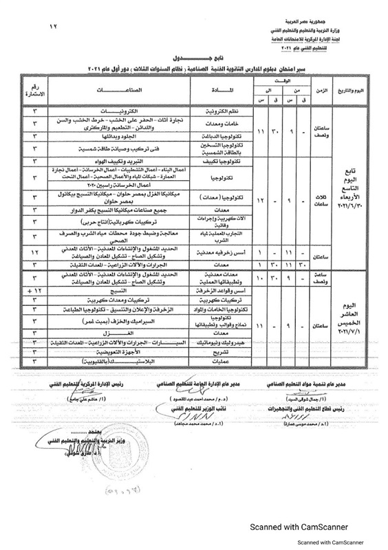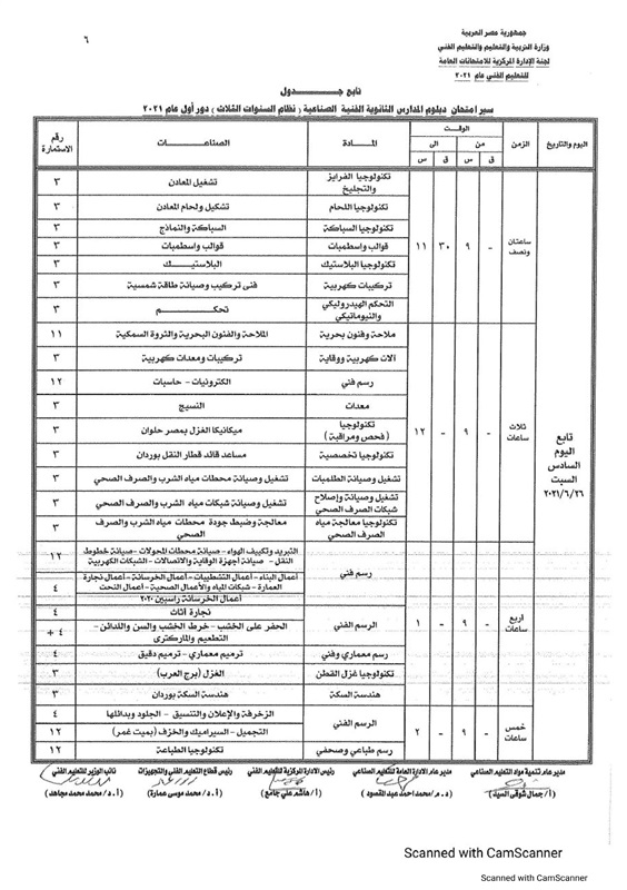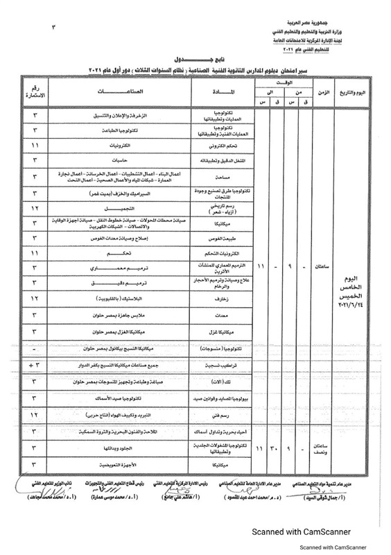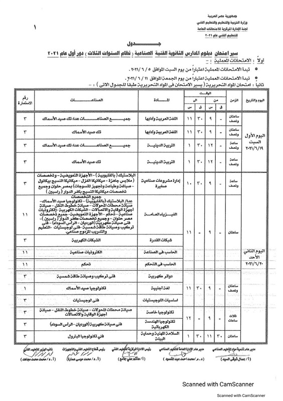 ننشر فيما يلي جدول دبلومات المدارس الثانوية الفنية الصناعية نظام 3 سنوات: