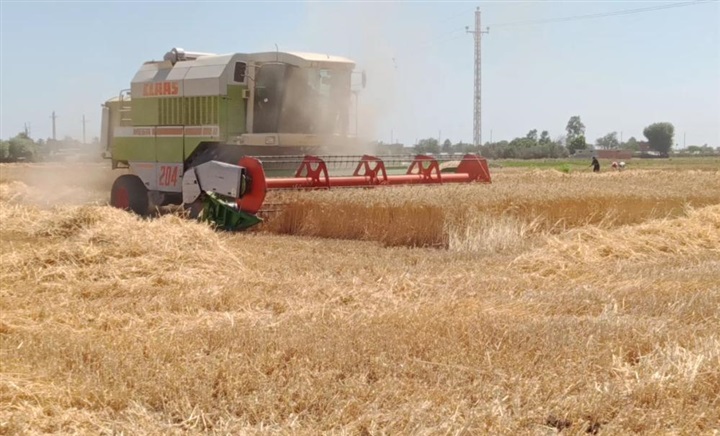 المحصول وخلوه من أي اصابات، وان القمح جاف بنسبة 100% ، مضيفا أن حصاد اليوم لثمار