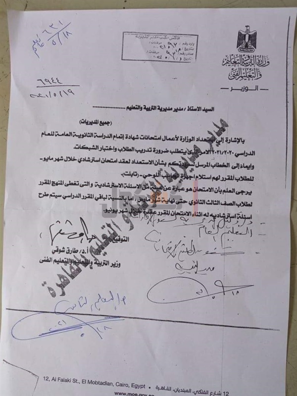 تنبيه مهم وعاجل بشان امتحان مايو للثانوية العامة "مستند"