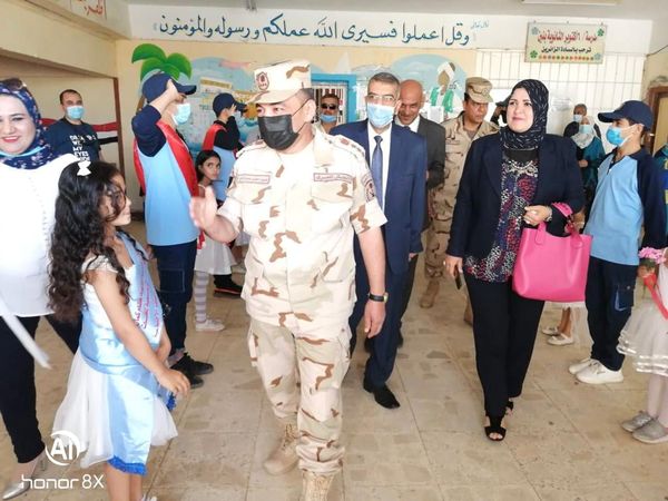المستشار العسكرى يتفقد المدارس للاستعدادات النهائية لامتحانات الدبلومات الفنية والثانوية العامة 2021