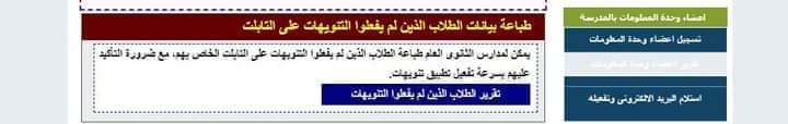 أتاحت وزارة التربية والتعليم والتعليم الفني، إمكانية طباعة بيانات الطلاب الذين لم يفعلوا تطبيق تنويهات، موضحه أنه يمكن لمدارس الثانوي العام طباعة الطلاب الذين لم يفعلوا تنويهات على التابلت الخاص بهم مع ضرورة التأكيد عليهم بسرعة تفعيله.