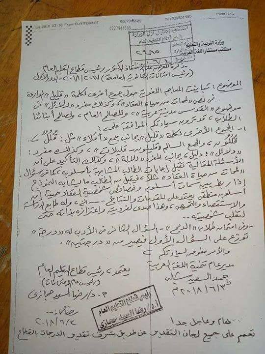 رفع الدكتور أحمد شلبي، مستشار مادة اللغة العربية بوزارة التربية والتعليم، مذكرة للعرض على الدكتور رضا حجازي، رئيس عام امتحان الثانوية العامة، بشأن إضافة بعد التعديلات على نموذج امتحان اللغة العربية، الذي أداه طلاب الثانوية العامة، أمس الأحد.