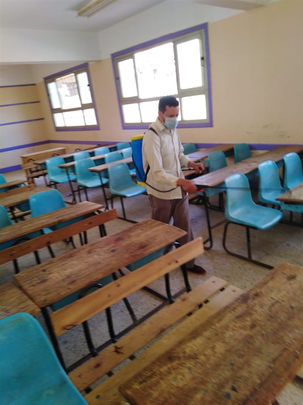والتأكيد على إرتداء الكمامات للطلاب وجميع العاملين داخل اللجان والتطهير اليومى قبل