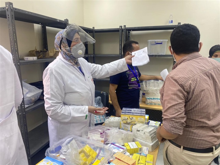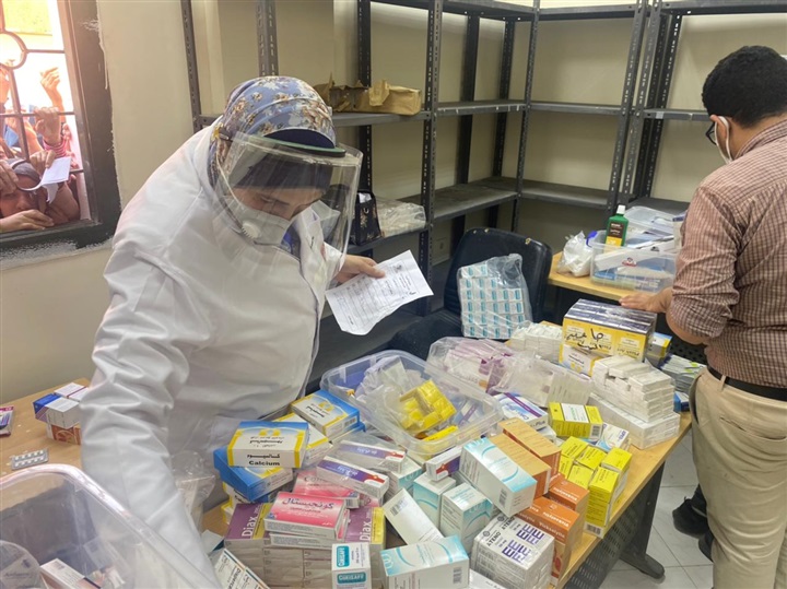 الصيدلية الطبية التي توافرها القافلة ويتم بها توزيع جميع الأدوية علي المرضي بالمجان،