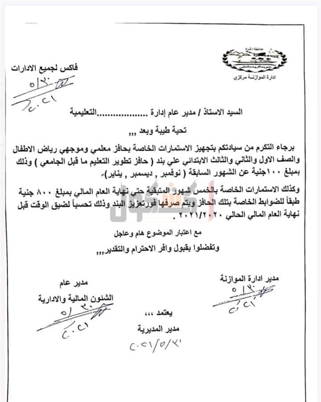 توجيه مهم بشأن صرف حافز تطوير التعليم ما قبل الجامعي "مستند"