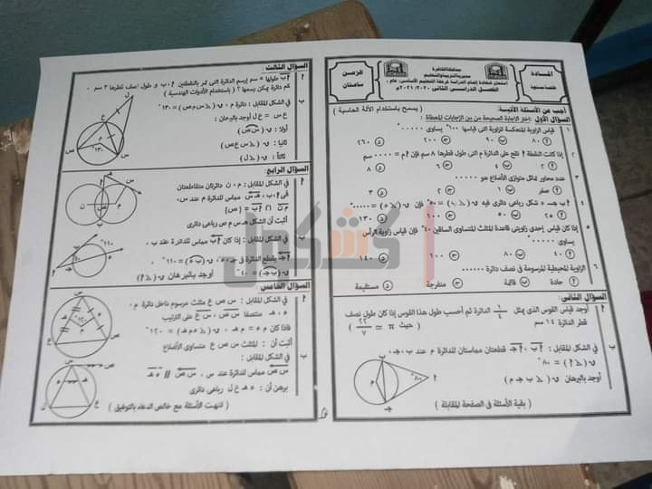 تداول بعض رواد مواقع التواصل الاجتماعي، امتحان مادة الهندسة لطلاب الشهادة الإعدادية بمحافظة القاهرة، بعد مرور ساعة من بدء الامتحان داخل أحد اللجان الامتحانية.
