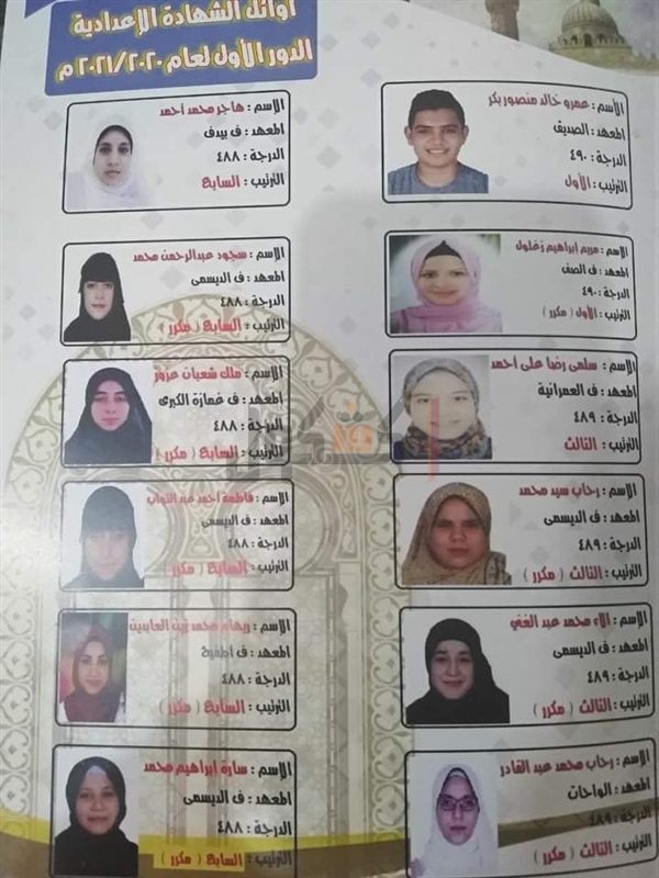 بالأسماء والصور.. أوائل الشهادتين الابتدائية و الإعدادية بالجيزة الأزهرية