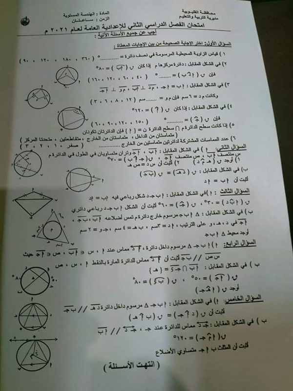 تداول امتحان مادة الجبر لطلاب الشهادة الإعدادية بالقليوبية.. صورة