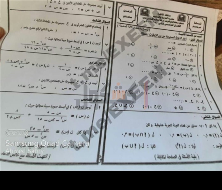 تداول رواد السوشيال ميديا وقنوات التليجرام، امتحان مادة الجبر، لطلاب الشهادة الإعدادية بمحافظة القاهرة.