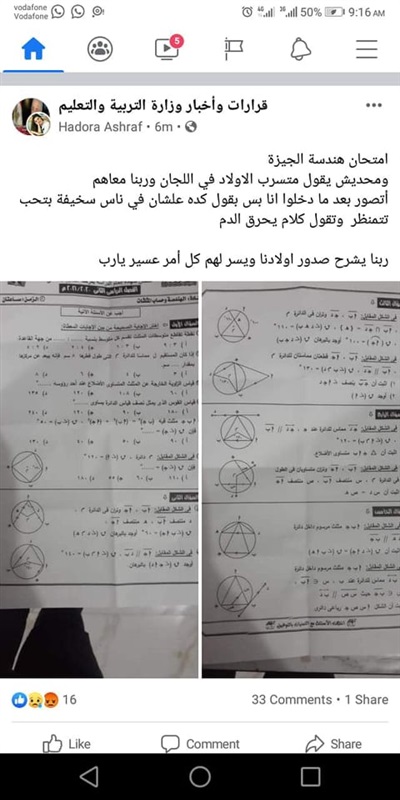 تداول امتحان الهندسة لطلاب الشهادة الإعدادية بالجيزة عبر السوشيال ميديا