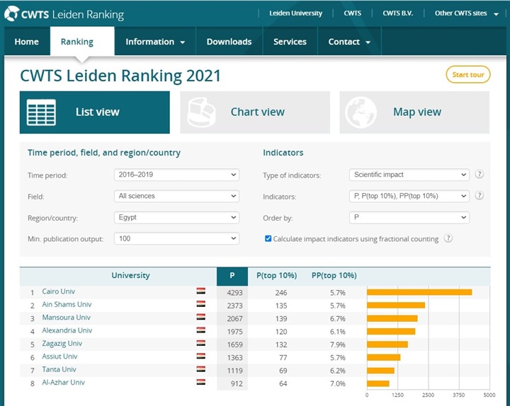ونوه قنصوة، أن تصنيف CWTS ليدن أستخدم مجموعة متطورة من