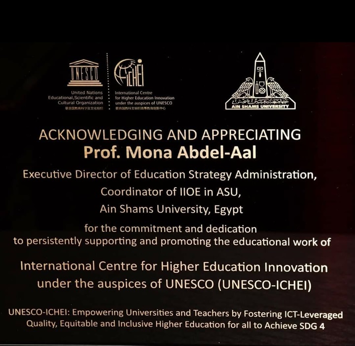 تأتي الجوائز والدروع في إطار الجهود المستدامة لجامعة عين شمس بالتعاون مع المركز الدولي للابتكار في التعليم العالي تحت رعاية منظمة اليونسكو UNESCO-ICHEI وشركاء من مؤسسات التعليم العالي في قارتي أفريقيا وآسيا، لتطوير العملية التعليمية والابتكار لمواكبة أحدث الأساليب والتقنيات في هذا المجال والتي تتماشى مع مستجدات الوضع العالمي الحالي.