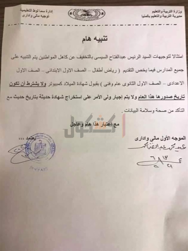 عبدالفتاح السيسي بالتخفيف عن كاهل المواطنين يتم التنبيه على جميع المدارس فيما