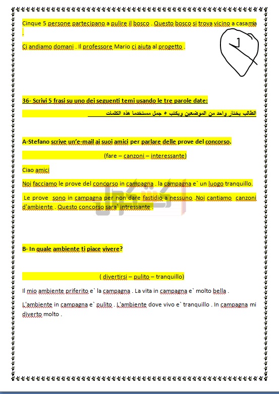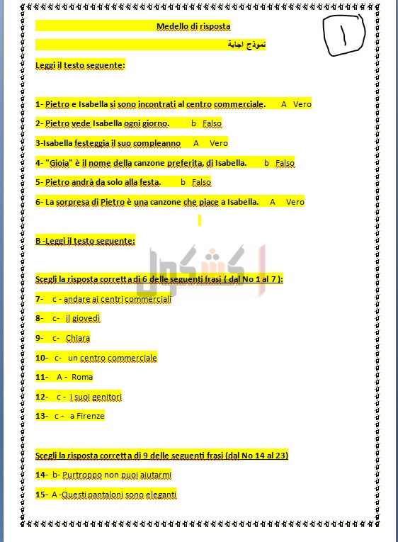لمادة اللغة الإيطالية لطلاب الثانوية العامة وإليكم نموذج إجابة