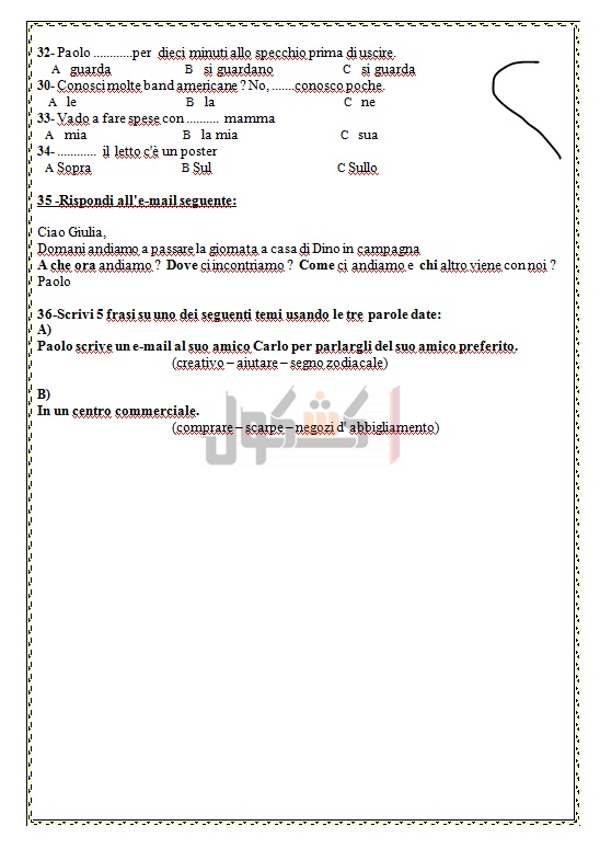 ننشر نموذج إجابة الاختبار الثاني للغة الإيطالية للثانوية العامة