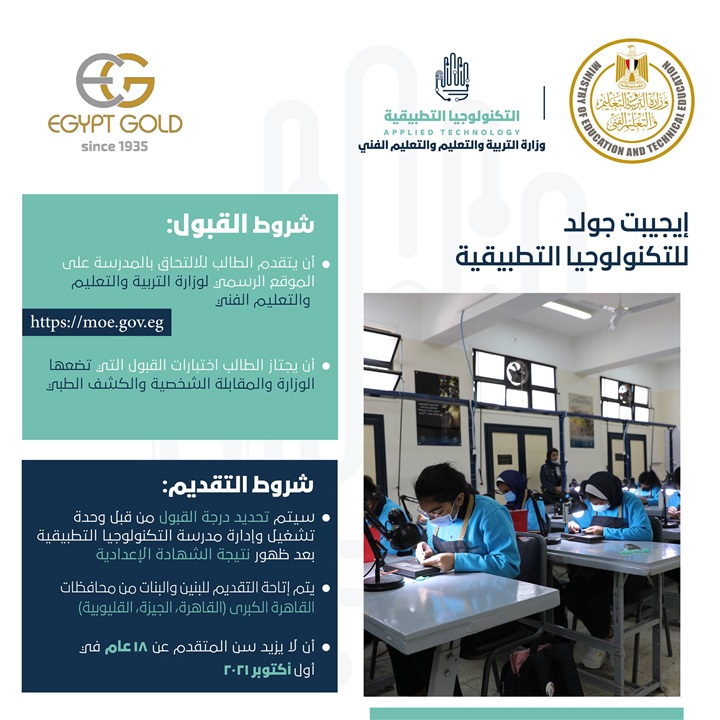 مميزات الالتحاق بمدرسة إيجيبت جولد للتكنولوجيا التطبيقية: