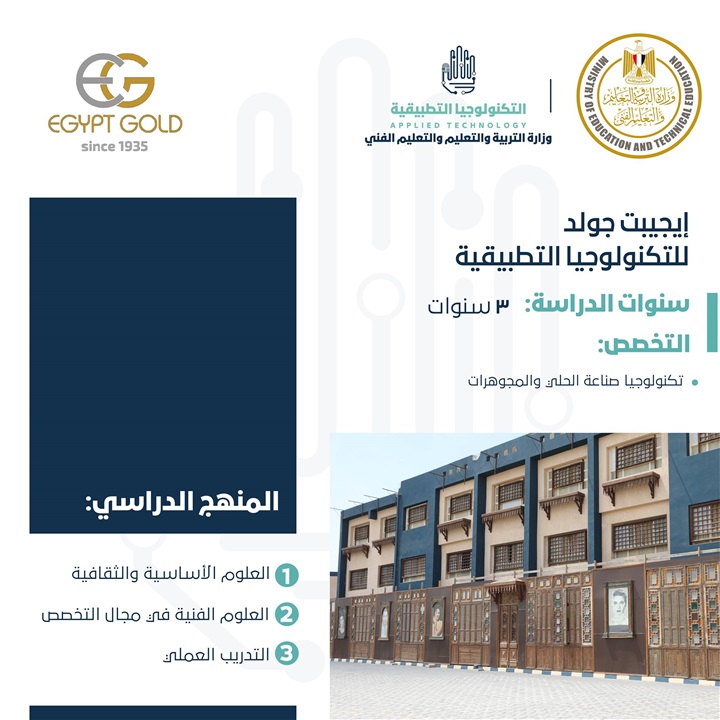 جولد للتكنولوجيا التطبيقية تتكون في: تكنولوجيا صناعة الحلي والمجوهرات وشروط التقديم