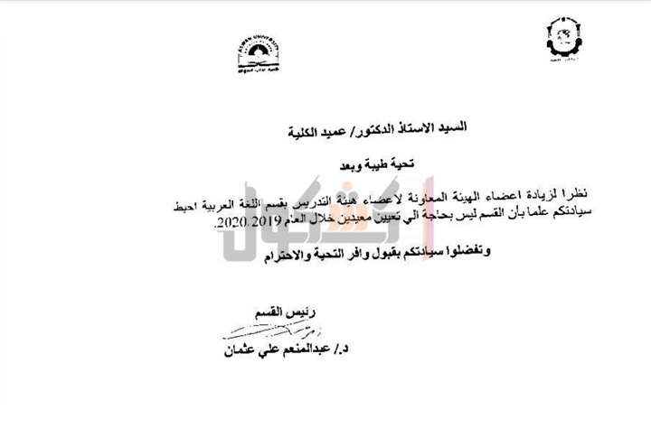 قد بدأت العام الجامعي 2001/2000 وطيلة هذه السنوات يتم تكليف المعيدين بالتناوب مع