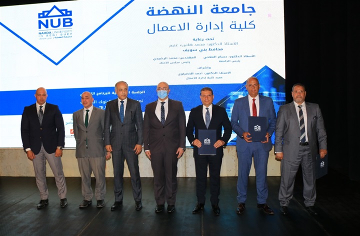 شهد الدكتور محمد هاني غنيم محافظ بني سويف، والدكتور حسام الملاحي رئيس جامعة النهضة، اليوم الإثنين الموافق 21/6/2021، مراسم توقيع بروتوكول التعاون بين جامعة النهضة ومجموعة من البنوك، هي: البنك الأهلي المصري، بنك مصر، البنك المصري لتنمية الصادرات، للمشاركة في برنامج نماذج المحاكاة التي تنفذها الجامعة، لإعداد وتمكين طلابها لسوق العمل، وبخاصة للعمل بالمؤسسات المالية الكبرى مثل البنوك والشركات الكبيرة، من خلال إكسابهم المهارات والخبرات المطلوبة.