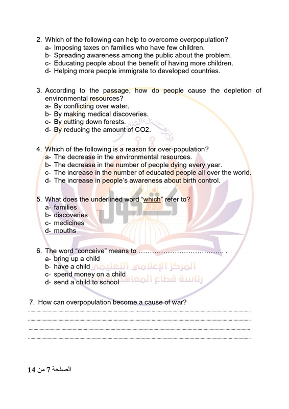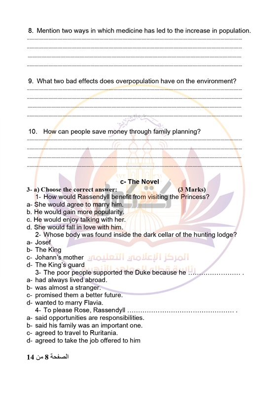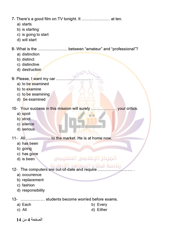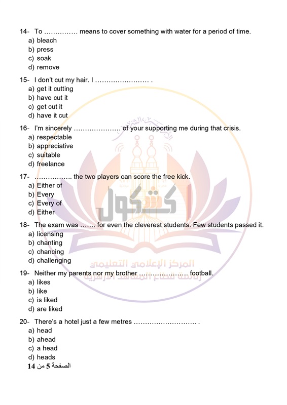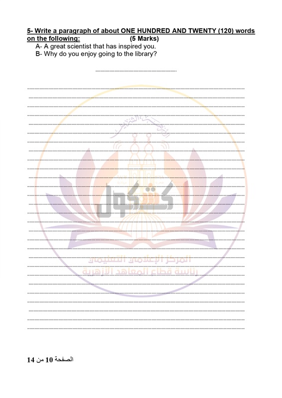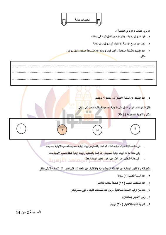 - عدد أوراق الإجابة 14 صفحة بخلاف الغلاف