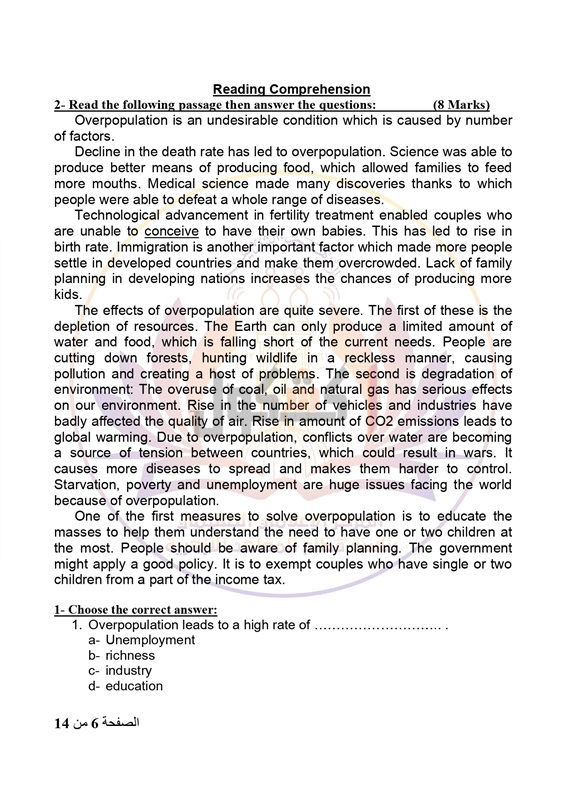 السؤال الثاني فى الورقة هو القطعة وتنقسم إلى 3 أجزاء الجزء الأول منهم اختار الاجابة الصحيحة وهو 5 اختيارات والجزء الثانى مقالى 5 فقرات والجزء الثالث تصحيح الخطأ، وذلك فى إطار القطعة، والسؤال له 8 درجات من الامتحان.